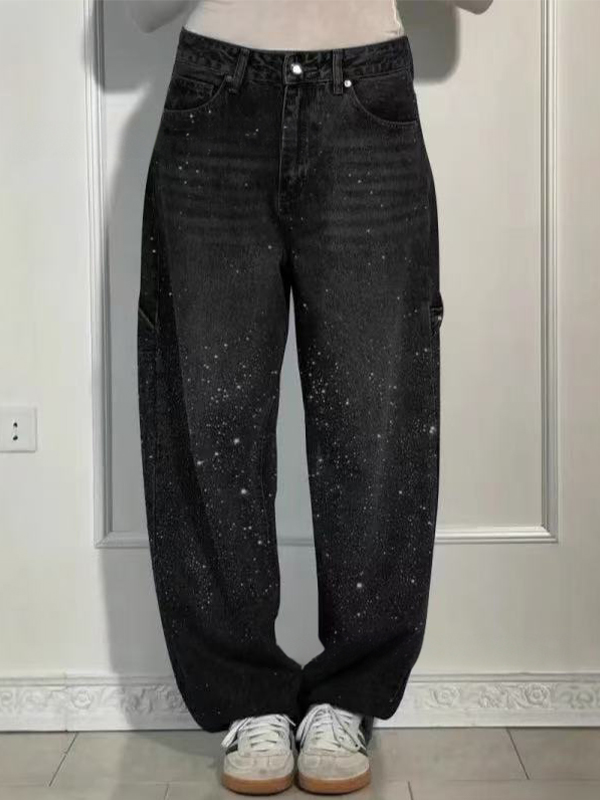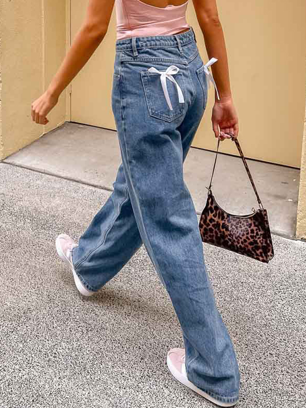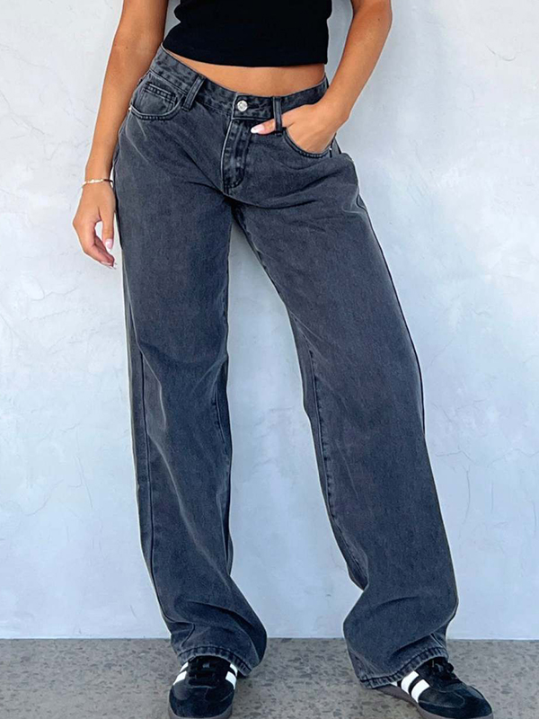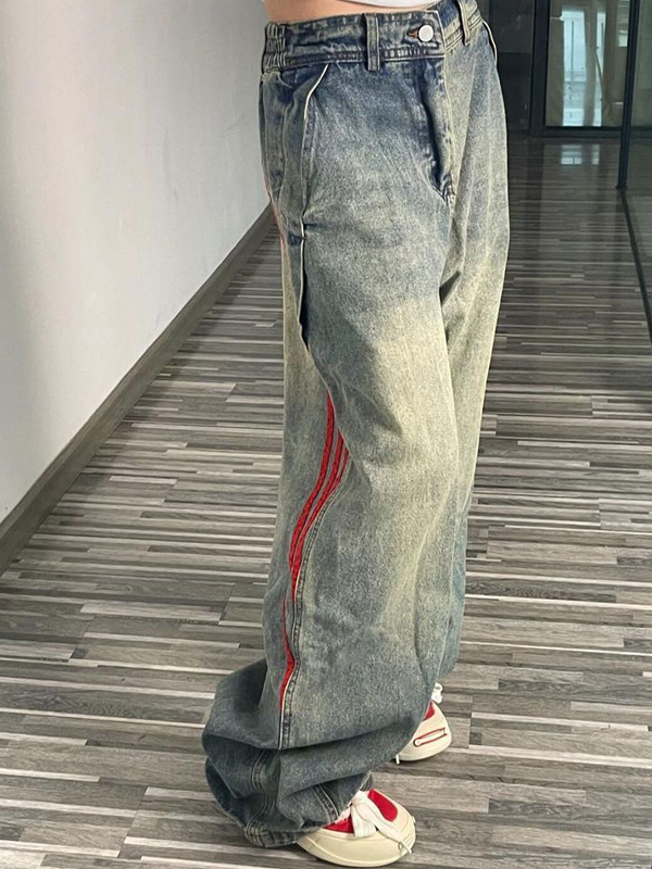Vaqueros boyfriend con botones y diseño retro de bigotes de gato lavados de estilo americano