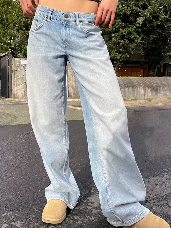 Vaqueros boyfriend con corte recto, pierna ancha y lavados