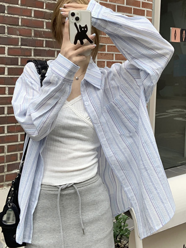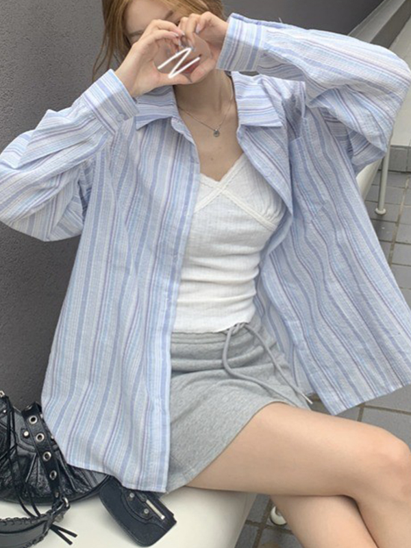 Camisas de manga larga con estampado de rayas de calle