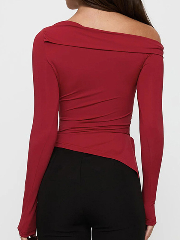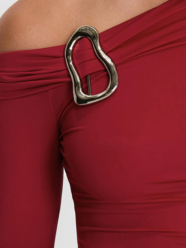 Composición del tejido: poliéster. Corte: entallado. Escote: cuello de un solo hombro. Largo de manga: manga larga.