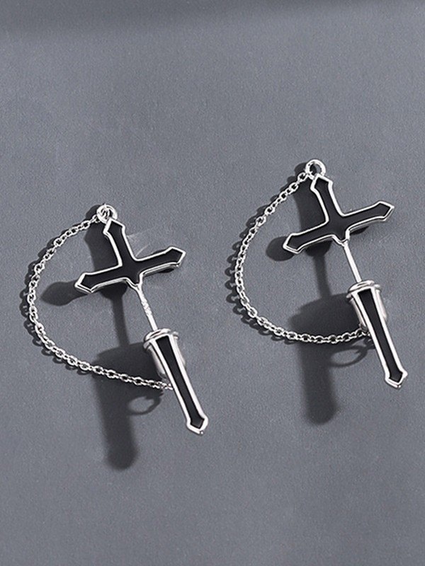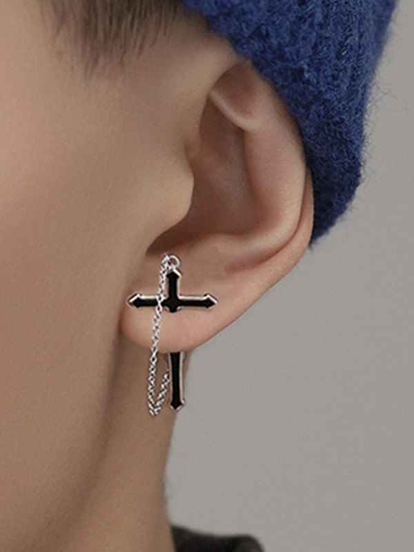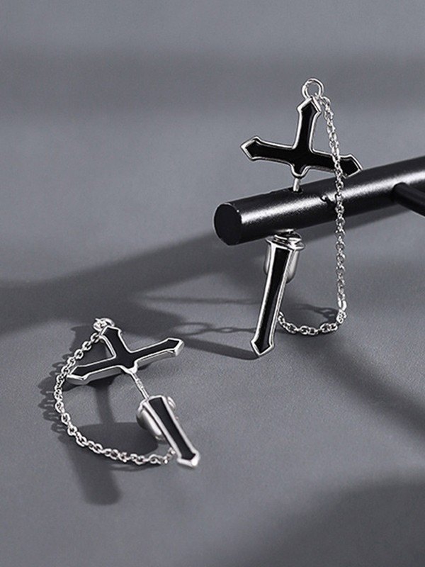 Sé el primero en valorar “Pendientes de cruz adornados con cadena punk para hombre”