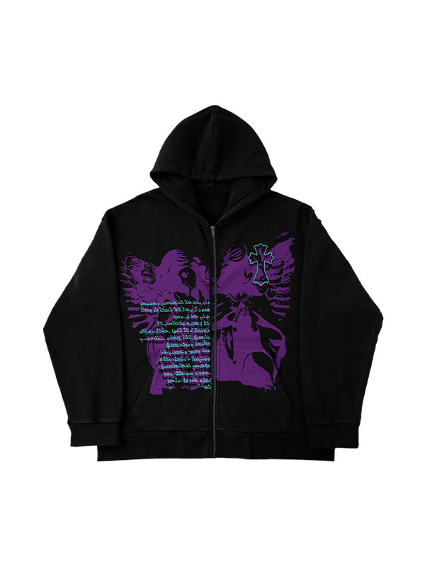 Diseño único: la sudadera con capucha presenta una cruz vintage y un estampado gráfico abstracto, agregando un ambiente fresco y vanguardista a tu atuendo.