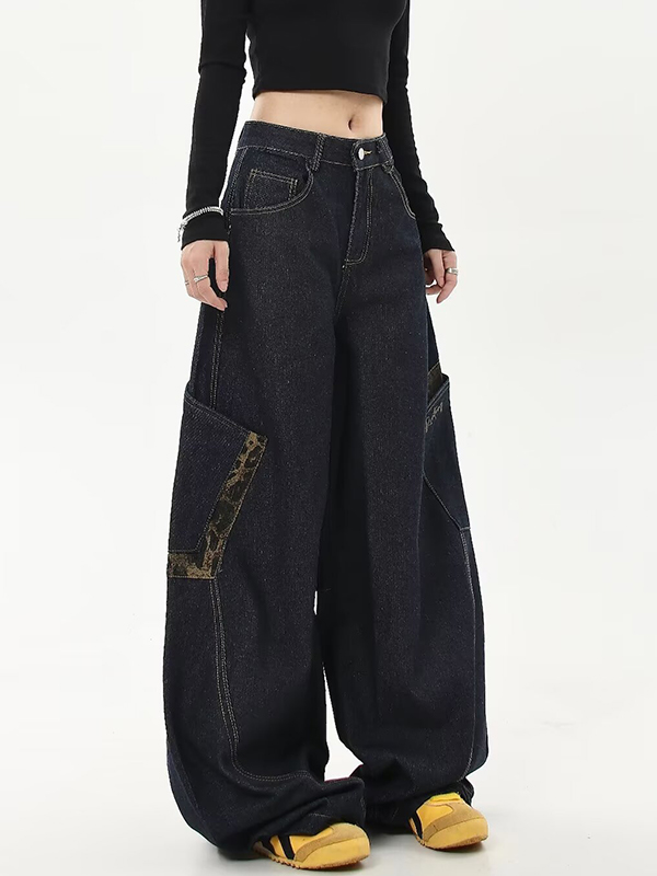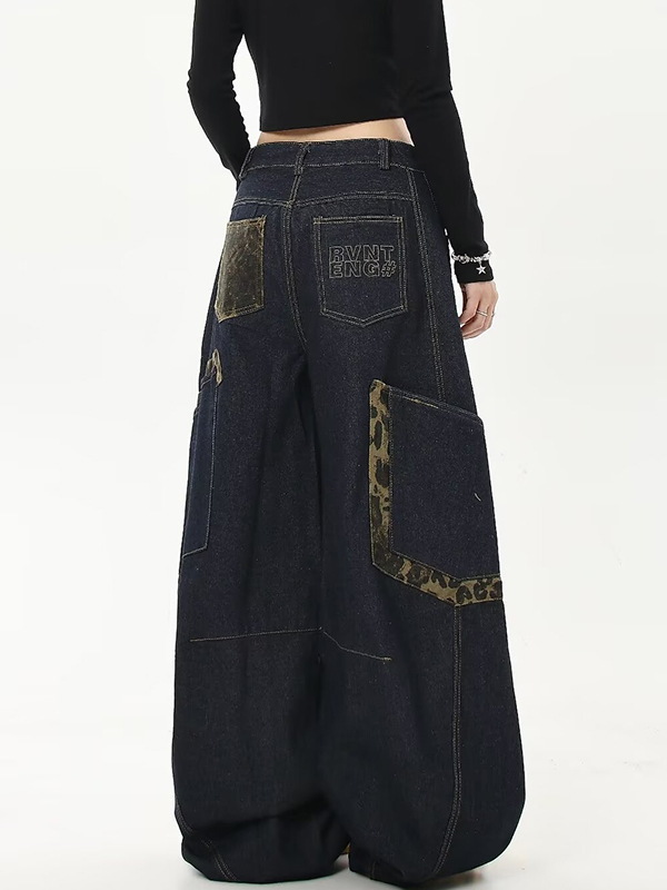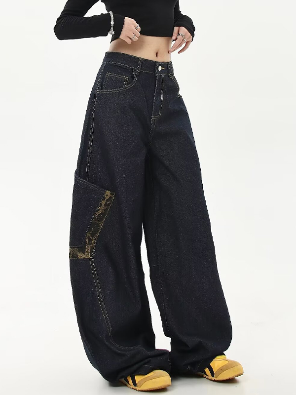 Sé el primero en valorar “Vaqueros boyfriend con costuras y estampado de leopardo estilo retro americano”