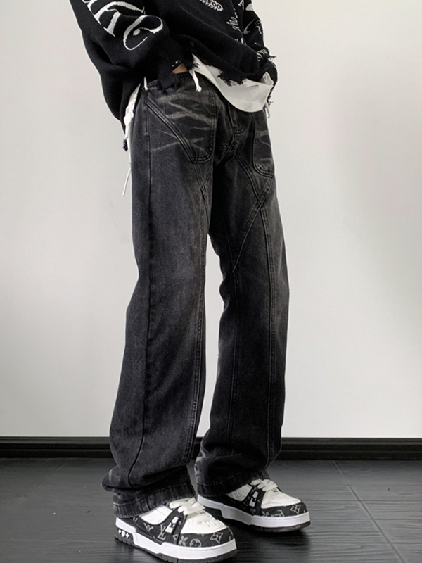 Vaqueros holgados con empalme y lavado vintage para hombre